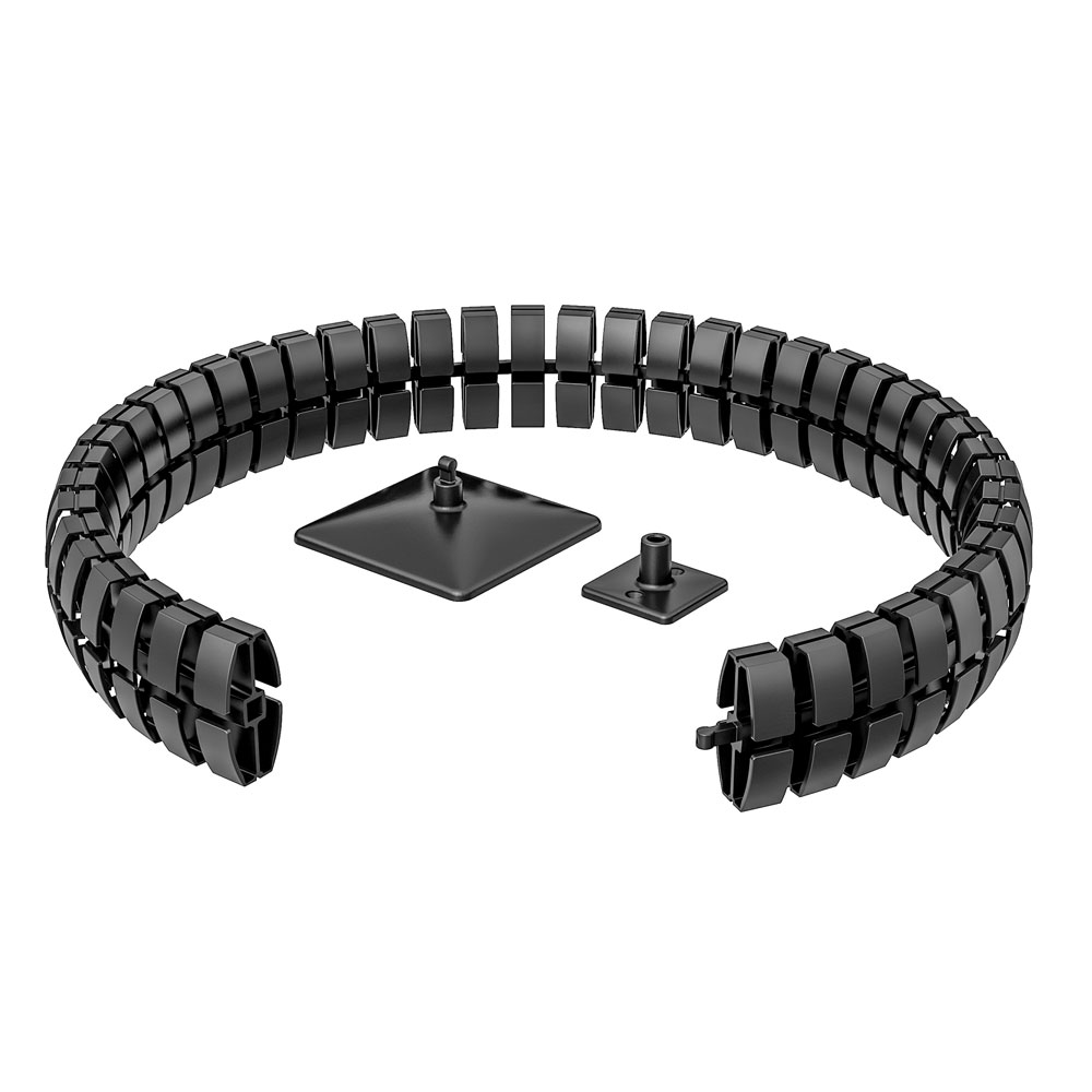 Kabelspirale zum vertikalen Führen von Kabeln. Die einzelnen Kettenglieder sind konvex geformt. Die Führung eignet sich zur Montage unter Tischplatten. Ein Tischplattenadapter, ein Standfuß und zwei Schrauben zur Montage werden mitgeliefert.