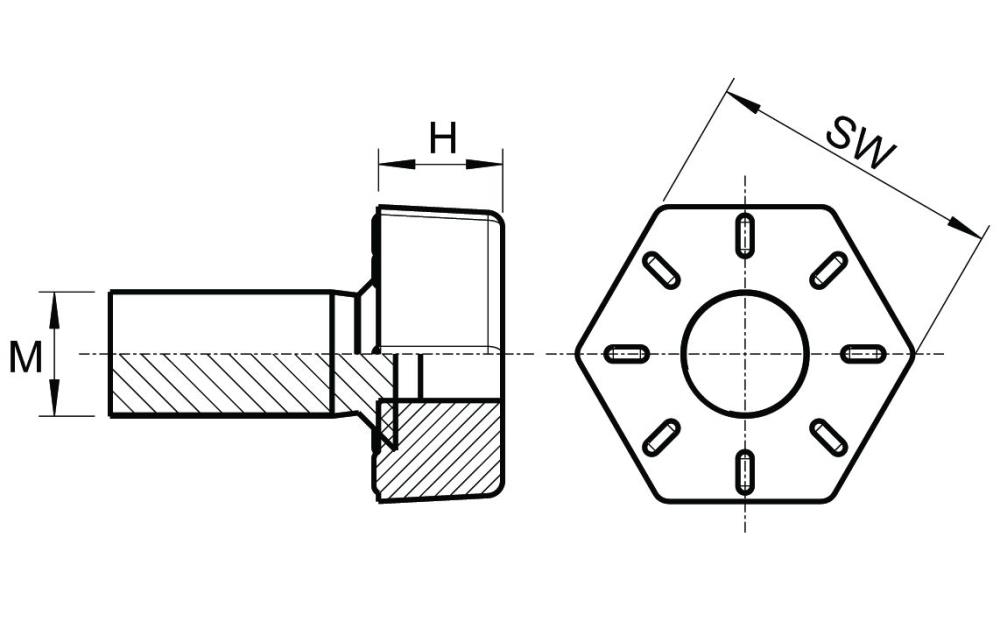 Diese Stellschrauben sind eine Alternative zu den Bodenausgleichsschrauben mit rundem oder quadratischem Fuß. Die Sechskant-Form passt perfekt auf Rohrbeine von Mobiliar oder Maschinen mit einem Gewinde für M8 oder M10.