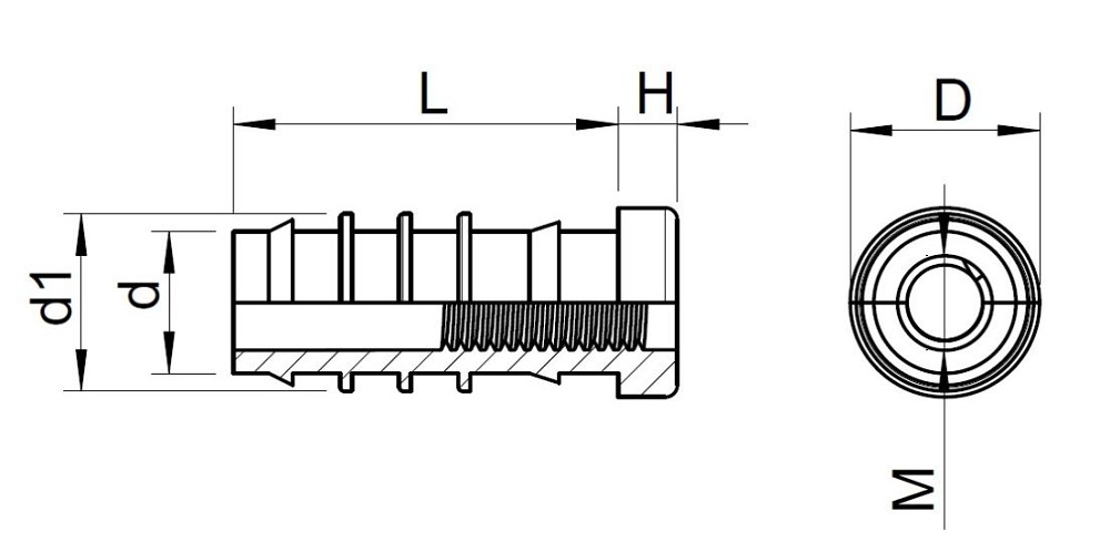Diese Variante ist geeignet als Einsteckbuchse für Rundrohre zwischen 1,5 und 5 cm. Die Buchsen bestehen aus hochfestem Polyamid und haben ein Kunststoffgewinde, das besonders schmale Wandstärken und Gewinde bis Größe M22 unterstützt. So wird in der kleinsten Ausführung trotz des stabilen M8-Gewindes ein Schaftdurchmesser von nur 1,2 cm erzielt. Dies wird durch einen längeren Schaft ausgeglichen, der einen stabilen Halt garantiert.
