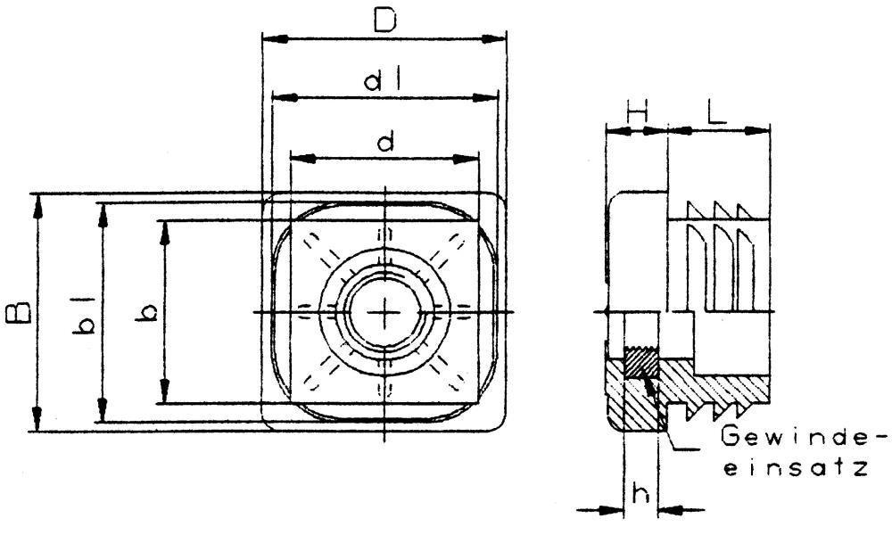 J 3 / Einsteckbuchsen für Vierkantrohre