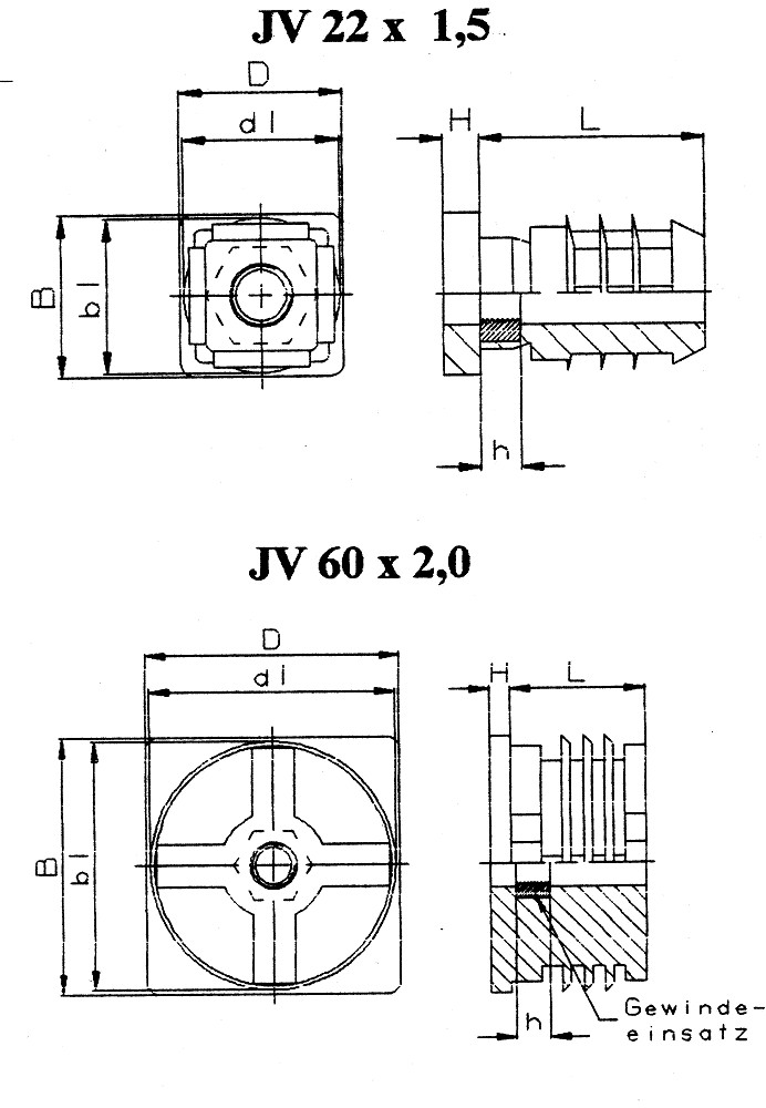 Die Bilder können vom ausgewählten Artikel abweichen. Sie haben den folgenden Artikel ausgewählt: Einsteckbuchsen für Quadratrohre langer Schaft (JV 1)