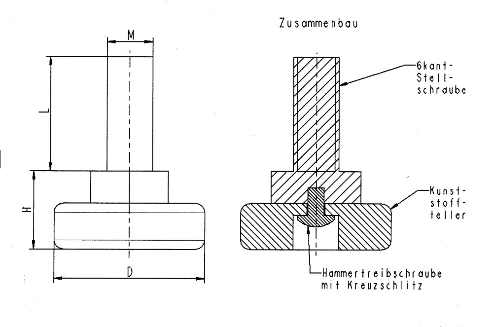| Bestellnummer | Farbe | Teller-Ø D | Sechskantschraube M x L | Höhe H | Preis * |
