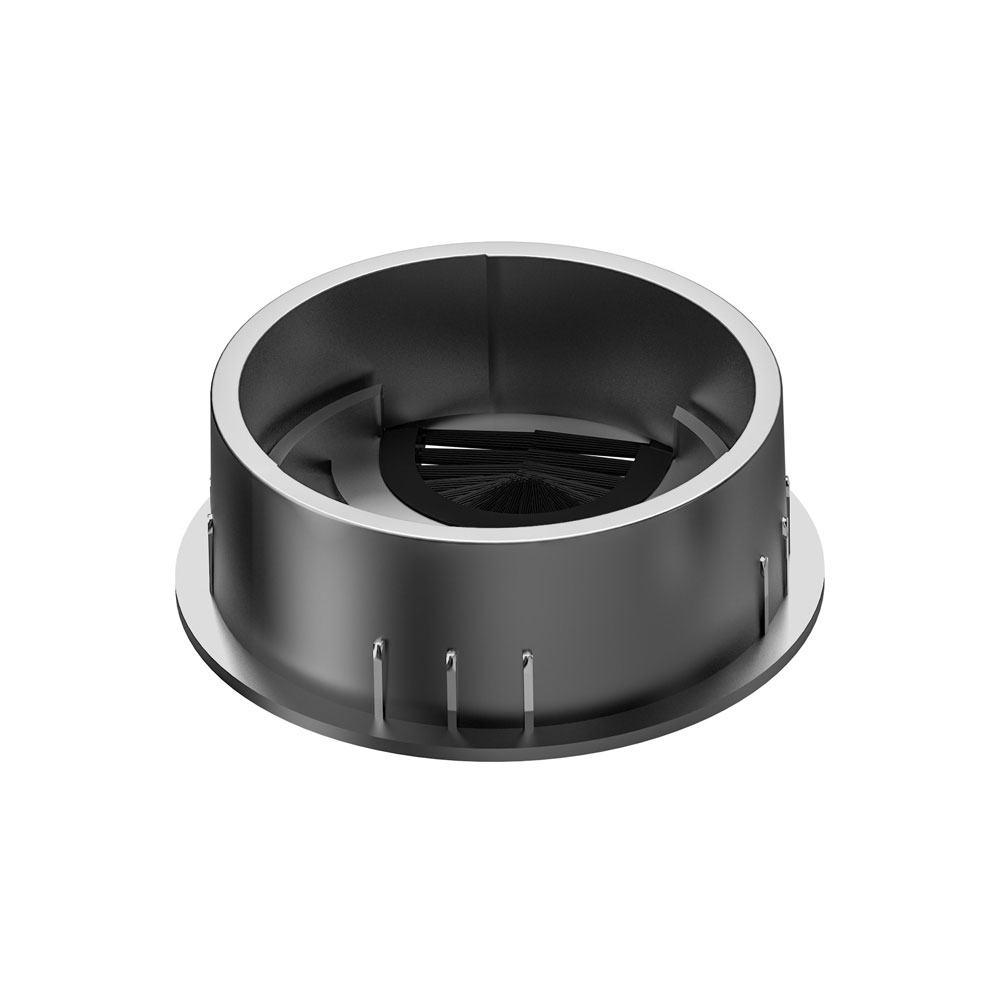 Diese Kabeldurchführung wird aus Zinkdruckguss gefertigt und ist wahlweise mit elegantem Edelstahl-Finish oder in Glanzchrom erhältlich. Geeignet zur Montage an Arbeitsplatten, Büromöbeln und Empfangstheken.