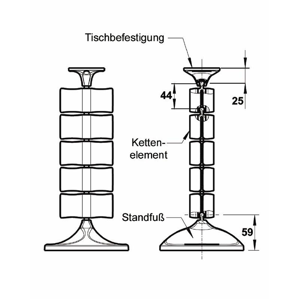 | Bestellnummer | Farbe | Länge Element | Befestigung und Fuß | nutzbare Länge | Anzahl Kettenelemente | Preis * |