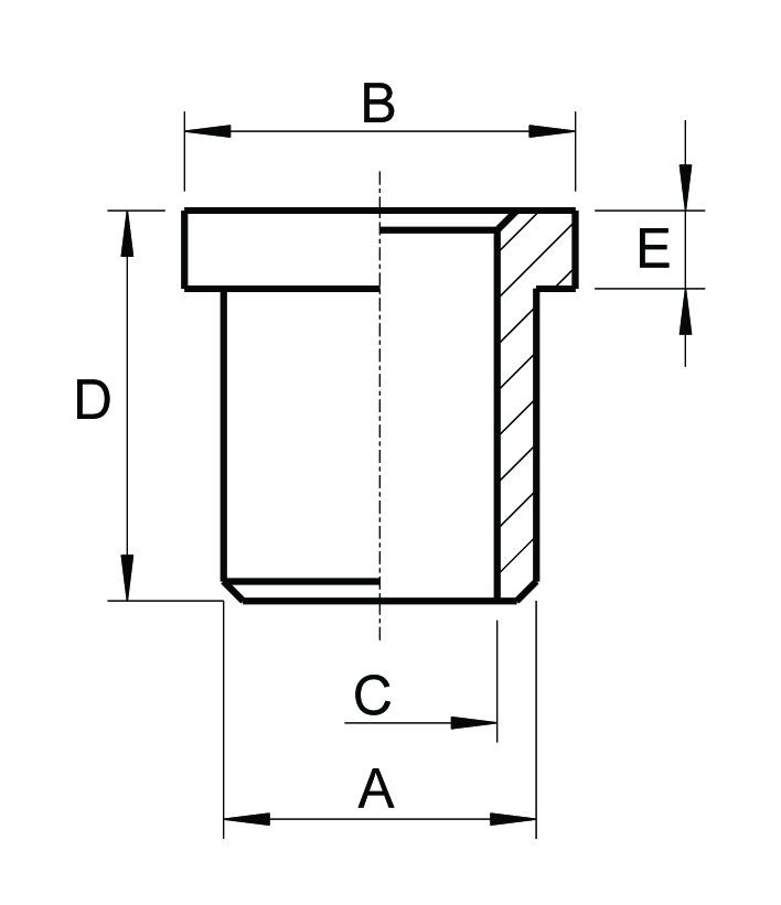 | Bestellnummer | Bundhöhe E | Farbe | Gesamthöhe D | Bund-Ø B | Bohr.-Ø C | Schaft-Ø A | Toleranz Maß C min/max | Toleranz Maß A min/max | Preis * |