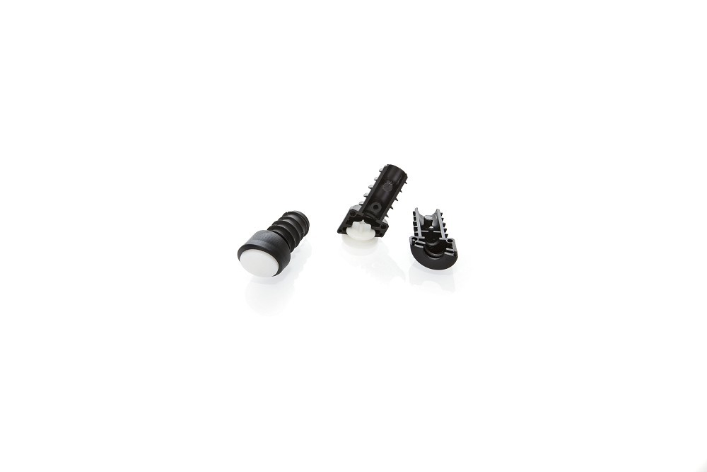 Lamellengleiter mit schrägem Boden für Rundrohr. Wählen Sie zwischen Gleitflächen aus TPU, PA 6 und POM-PTFE. Die Stopfen eignen sich für schräg stehende Stuhlbeine mit Neigungswinkel von 12 bis 18°.