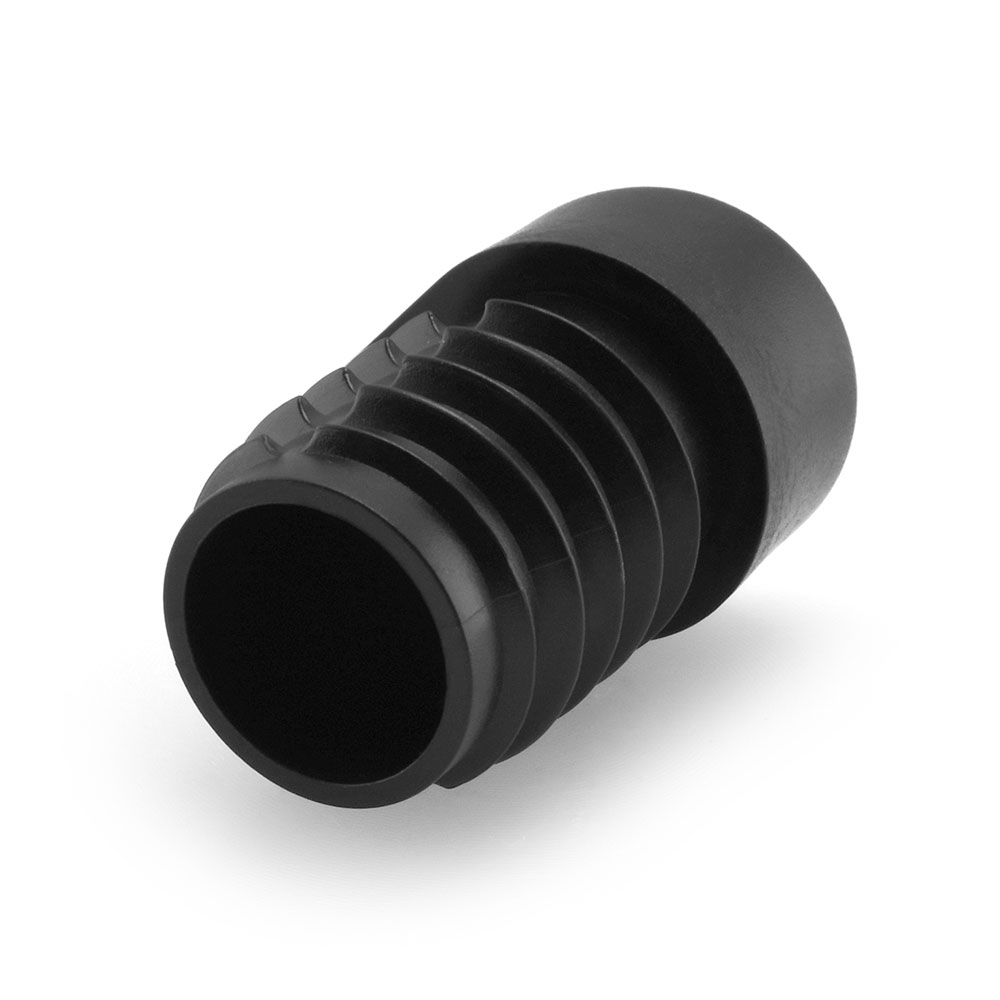Stopfen mit Stapelschutz sind lieferbar für runde Rohre mit Außendurchmessern von 18 mm bis 25 mm. Die abgewinkelte Bodenfläche ermöglicht den Einsatz bei schräg stehenden Rohrkonstruktionen.